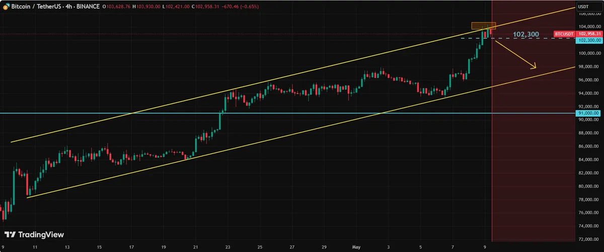 اگر بیتکوین سطح استاتیک ۱۰۲۳۰۰ رو از دست بده، میتونه به سمت مرزهای پایینی کانال روندش (به ترتیب سطوح 99517 ، 98000_ حمایت داینامیک_، محدودهای باکسِی در حوالی 95 تا 96000، و سطوح 93316 و 91000 _ حمایت استاتیک عالی _ که حمایتهای پُر قدرتی رو داشته) عقبنشینی کُنه. البته در میانمدت، روند صعودی باقی خواهد ماند، بنابراین هرگونه عقبنشینی کوتاهمدت، احتمالاً فرصتهای خرید رو ایجاد خواهد کرد، البته تا زمانیکه کانال روند جدیدش و سطح حمایت ۹۱۰۰۰ دستنخورده باقی بمونه.