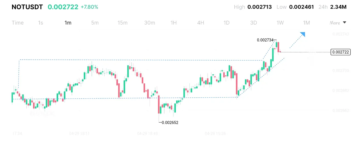 با سلام نات تایم فریم یک روزه صعودی هدف اول 0.0027 بوده شکسته شده هدف بعدی 0.0028 و 0.0032 هست که با روند صعودی در دسترس است . خبر های خوبی از نات در راه است .