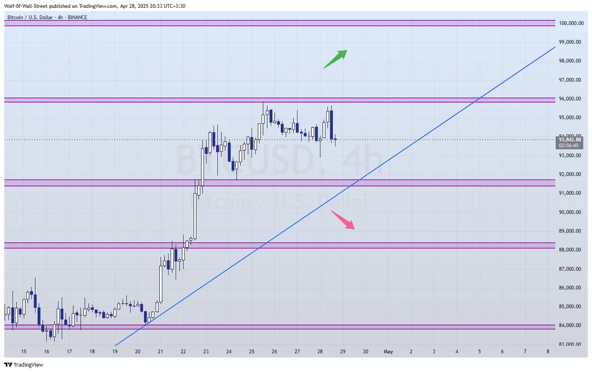 تحلیلگران انتظار دارند که در صورت عبور از سطح مقاومتی 96000 دلار، قیمت بیتکوین قادر به رسیدن به سطوح بالاتر مانند 100000 دلار و حتی بیشتر شود. از سوی دیگر، اگر قیمت نتواند از این سطح عبور کند و به زیر 93000 دلار کاهش یابد، ممکن است شاهد اصلاح قیمت به سمت حمایتهای پایینتر باشیم.