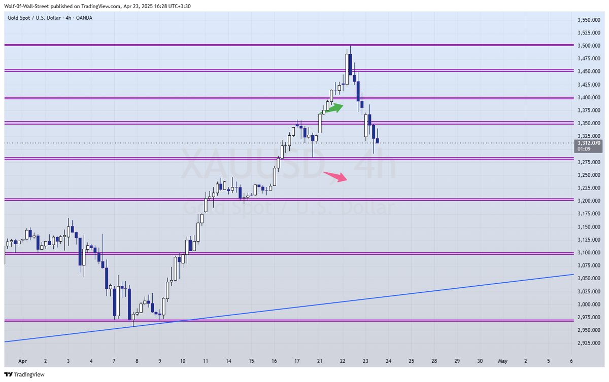 قیمت از 3500 دلار تا نزدیکی سطح 3280 دلار کاهش داشته و هم اکنون در بالای حمایت مهم 3300 دلار در حال نوسان می باشد.