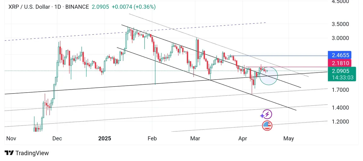 از همین حوالی تا محدوده 1.9 دلار میتونه جایی برای برگشت ریپل باشه تا یک موج افزایشی رو تا تارگت آبی رنگ تجربه کنه ... البته به شرط عبور از مقاومت قرمز رنگ .