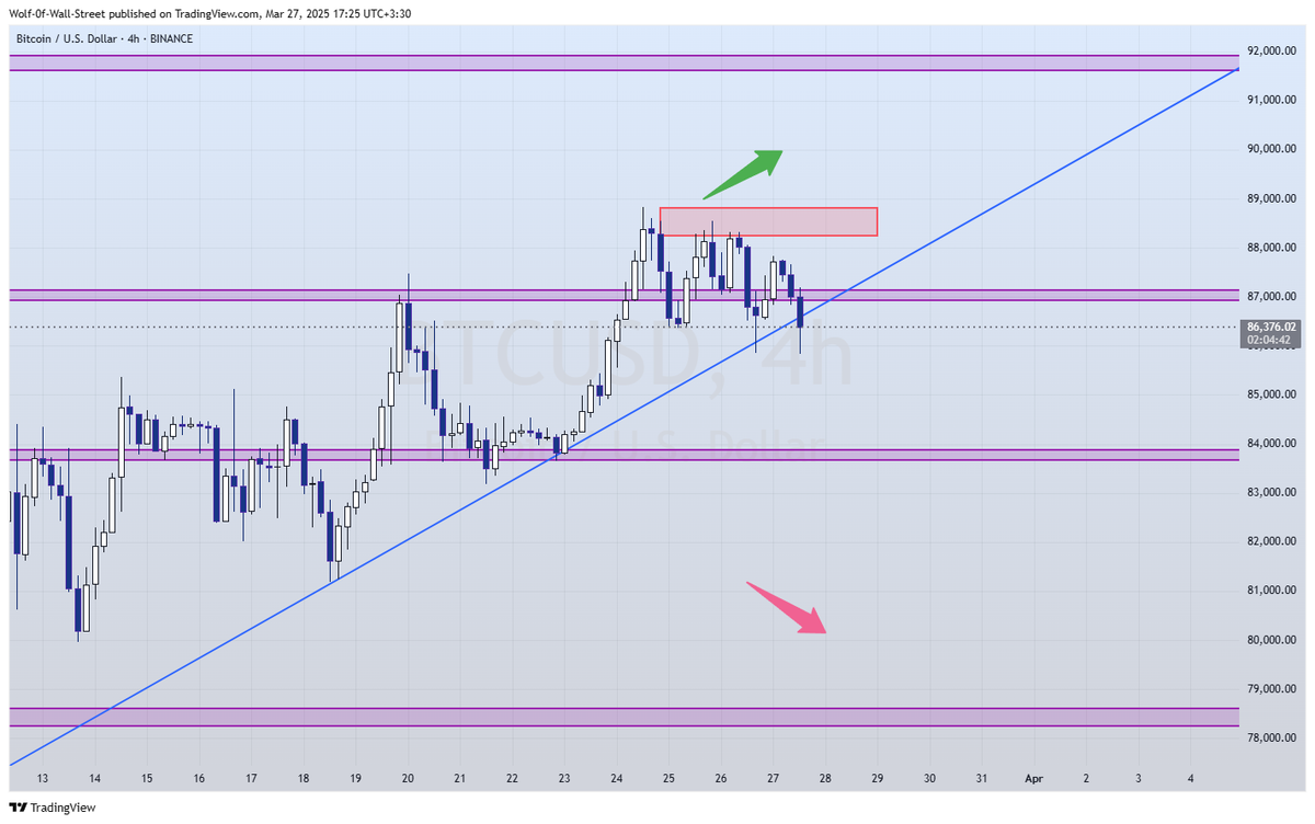 در صورت عبور معتبر از این ناحیه و عدم حمایت خریداران، انتظار ریزش تا محدوده 84000 دلار را خواهیم داشت.