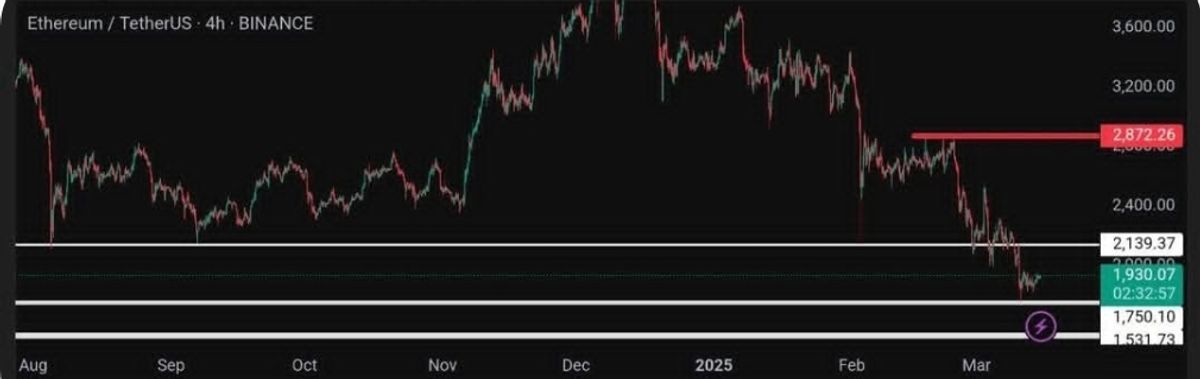 اتریوم در تایم فریم ۴ ساعته روند ساید تشکیل داده است. مقاومتی که فعلا برای اتریوم حائز اهمیت است ناحیه ۲۱۰۰ دلار میباشد و تا زمانیکه زیر این ناحیه قرار دارد احتمال اصلاح تا محدوده ۱۵۰۰ دلار را نیز خواهد داشت. همچنین در حال حاضر در محدوده ۱۷۵۰ دلار نیز دارای حمایت معتبری است