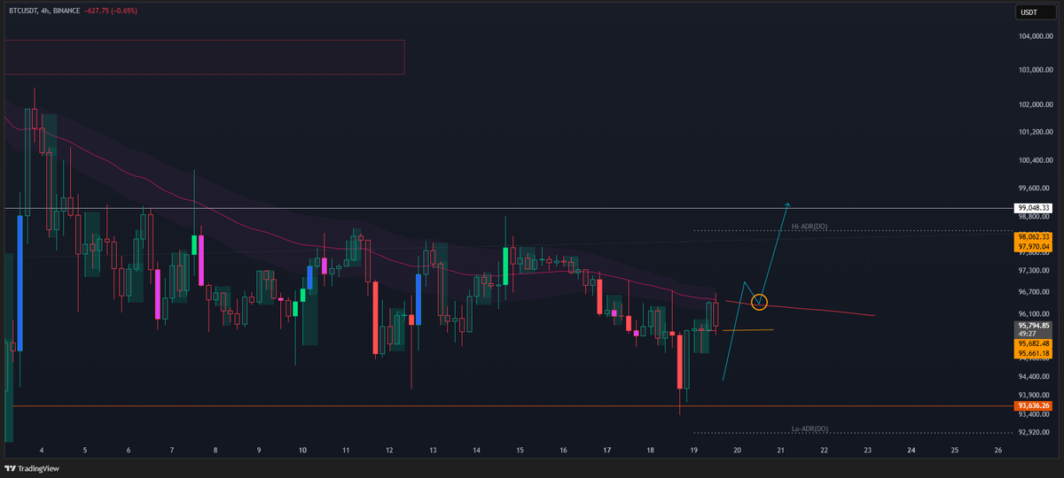 خب طبق تحلیل که توی نظرات گداشتم و واکنشی که در منطقه 93300 تا 93500 داشتیم ی بروز رسانی میتونیم داشته باشیم. از اینجا ادامه روند بستگی به باز پس گیری EMA50 4 ساعته داره. حالا این که چرا این ema در این تایم فریم مفصله که فعلا جاش نیست اینجا. در صورتی که این ema رو پس گرفته بشه و ی تایید کندلی یا ریتست بهمون بده نقدینگی 99 هزار رو طبق حرفی که تو کامنتا زده بودیم میزنه و معاملات شرتی که باز هست بخش زیادیش لیکویید میشه. فعلا در ساعت 18:30 دقیقه روز یک اسفند در حال ریتست کلوز روز قبل که میشه حدود 95670 هست. تا وقتی کلوز روز بعد بالای این عدد باشه میتونیم به بازپس گیری ema50 4 ساعته و رسیدن به 99500 امیدوار باشیم. البته این تحلیل هم تا زمانی که مپ نقدینگی به روز نشده یا نقدینگی جهت و مقدارش تغییر نکرده پا برجاست. در صورتی که داده های نقدینگی تغییری بکنه در کامنتا ی بروز رسانی میکنم. تا زمانی که ema50 4 ساعته رو پس نگرفته از معاملات لانگ دیگه دوری کنین. تایید ادامه روند از اینجا همینه. در غیر این صورت مجددا ریجکت میشه