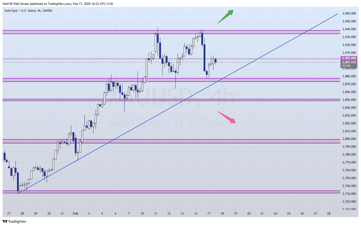 با توجه به روند فعلی، اگر طلا بتواند بالاتر از 2900 دلار تثبیت شود، احتمال حرکت به سمت سقف تاریخی و رسیدن به سطوح بالاتر مانند 2940 دلار وجود خواهد داشت. این سطح ممکن است با فشار فروش روبرو شود، اما در صورت عبور از آن، حرکت صعودی قویتری را انتظار داریم.