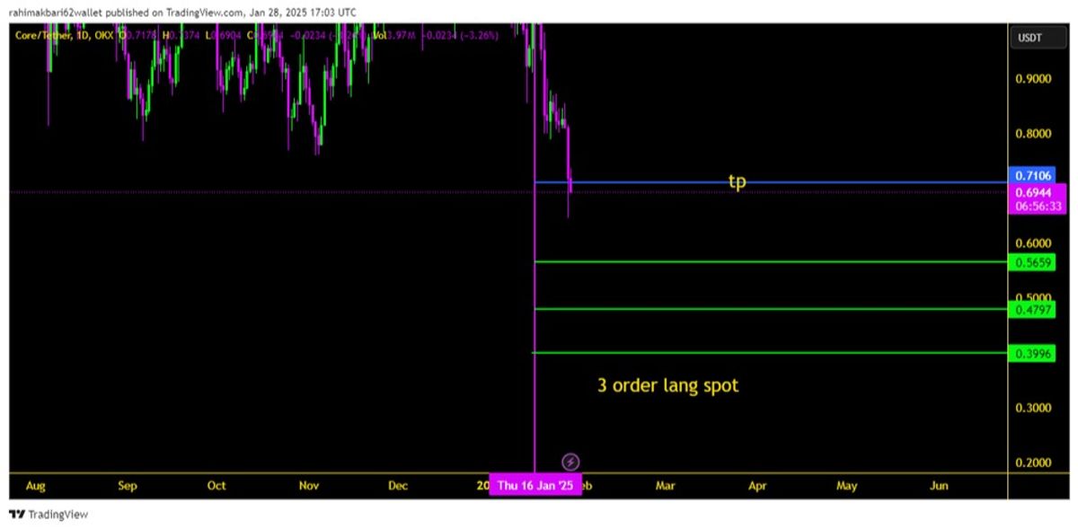 تحلیل ارز CORE هست نقاط مشخص شوده به صورت اسپات خرید شود