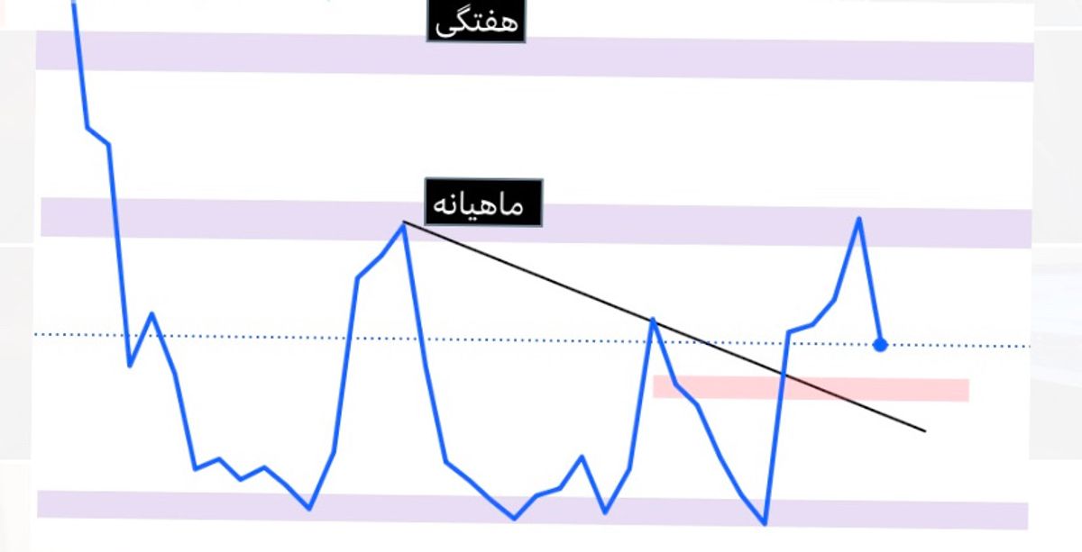بی بی دوج در تایم فریم ماهیانه در حالت لاین که کلوز کندل ها مد نظر ما هست در یک باکس در حال حرکت هست . در این باکس یک ترند لاین معتبر ماهیانه شکسته شده که ناحیه شکست محل تلاقی با یک سطح استاتیک مهم هست که حوالی هشت صفر هیجده تا هشت صفر بیست هست . به نظر بنده از همینجا قیمت به سمت بالا برمیگرده و به سمت هشت صفر سی در فاز اول و در فاز دوم تا هشت صفر ۴۰ حرکت میکنه . دقت کنید که ابن ارز وقتی در تایم فریم های ماهیانه از مناطق مهم مقاومتی خودش خارج میشه مجدد به زیر اونمناطق بر میگرده و تثبیت میده که نشون از قدرت این نواحی و فشار فروش بالاس . لذا تحت هیچ شرایطی در مناطق مقاومتی ماهیانه دست به خرید هیجانی نزنید و منتظر شکست معتبر و پولبک به نواحی شکسته شده و مشاهده الگوی کندلی باشید