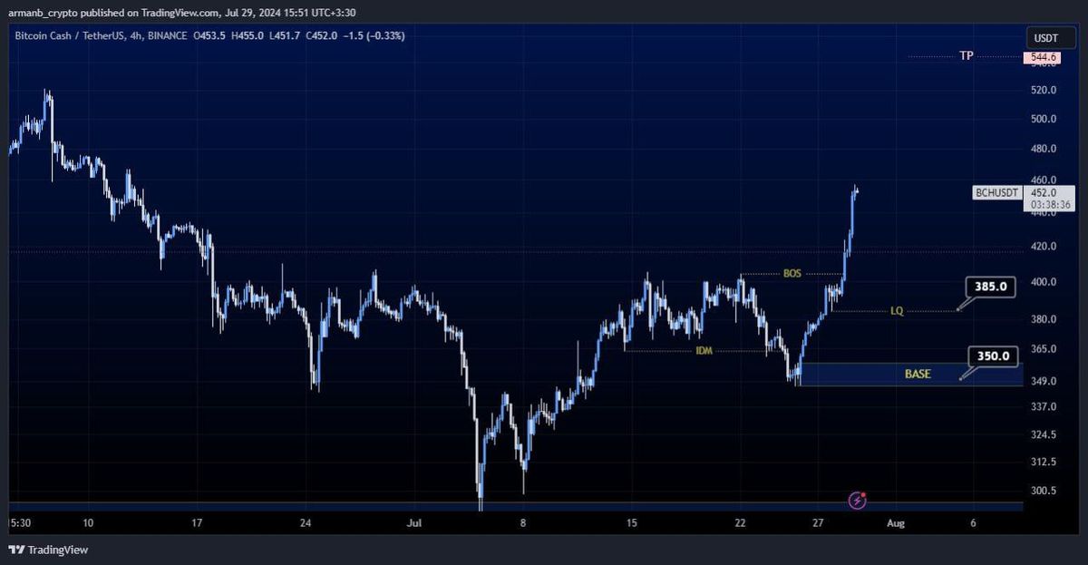 قیمت روند صعودی مناسبی را آغاز کرد و با شکست ساختار ایجاد شده انتظار ادامه روند صعودی را داریم و باید منتظر اصلاح کوتاه مدت نزولی باشیم و در دو محدوده 385 و 350 دلار باید منتظر دیدن تریگر ورود باشیم و احتمال رسیدن قیمت به هدف مشخص شده وجود دارد