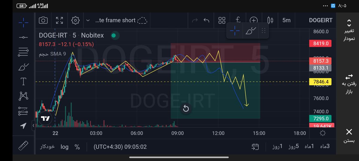 احتمالاینکه بیشتر هم بریزه هست ولی ما معاملمونو رو اون 4 درصد 🍺میبندیم و وایمیسیم ببینییم مارکت چی میشه