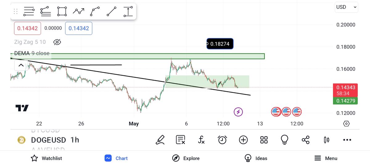 ببنید هموطنای من قیمت دوج کوین از ناحیه ۰/۱۴۲۵سنت شروع به حرکت کرد ولی چون نقدینگی کافی همراه نبود ورشد زیادی نکرد ولی چیزی که در تایم روزانه نظر منو جلب کرده کندل های قرمز در انتهای یک روند نزولیه که با شدو و حجم کم بسته شدن نشونه انتهای روند اصلاحیه تا اینجا اوکی دوم اینکه ممکنه با نواسانات شدید قیمتی همراه باشیم اونم بخاطر جمع اوری نقدینگی توی یک ناحیه که ممکنه چند روز طول بکشه و شما خروج بزنید دوج زمانی شروع به حرکت میکنه که شما نا امید و تمرکز از دست داده باشید در نظر داشته باشید که از دست داد حمایت /۰۱۲سنت میتونه کریپتو رو یه مدت وارد فاز اصلاح بکنه بعید میدونم چون نهنگ های زیادی در سطح ۵۷۰۰۰ بیت کوین خرید کردن