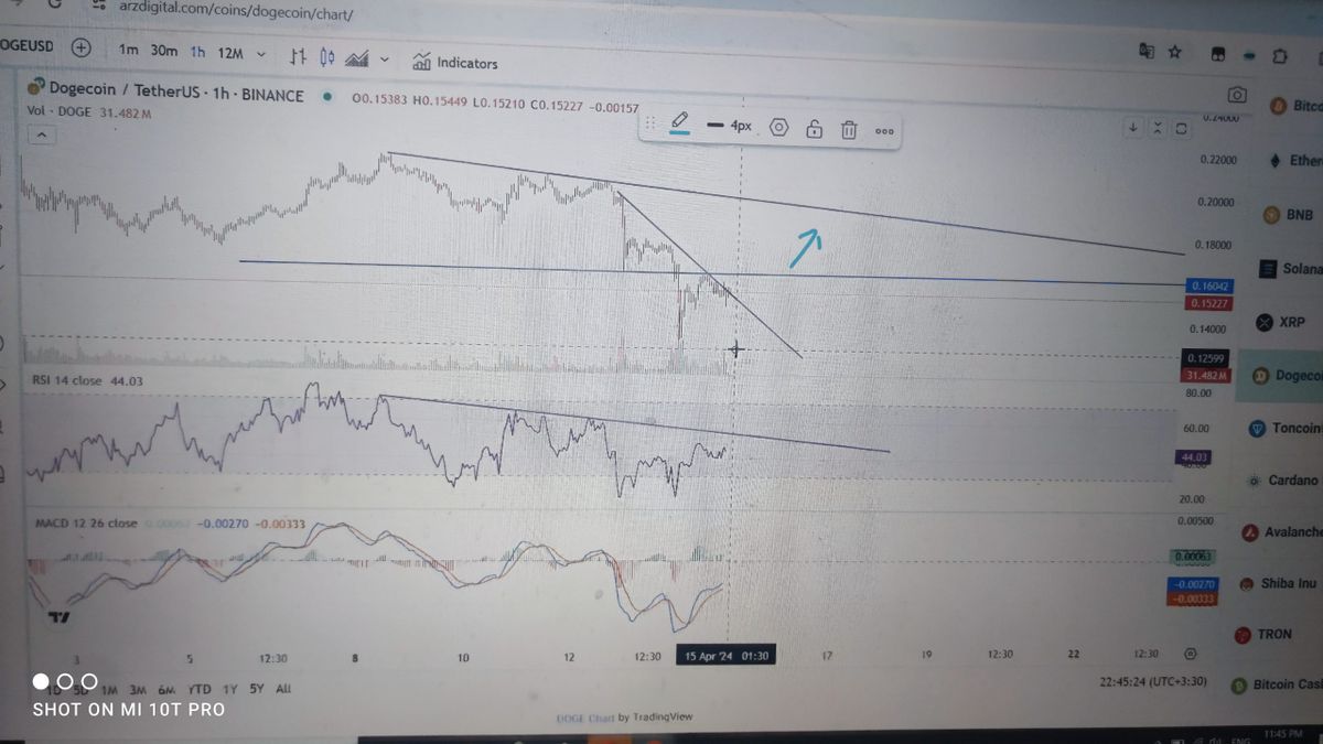 صعودی شدن دوج کوین اگر مقاومت رو بشکون تا 17درصد سود میمونه تا فردا بزارین از دست ندین