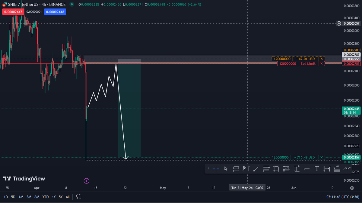 Shib/usdt تایم فریم ۴ ساعته روند نزولی