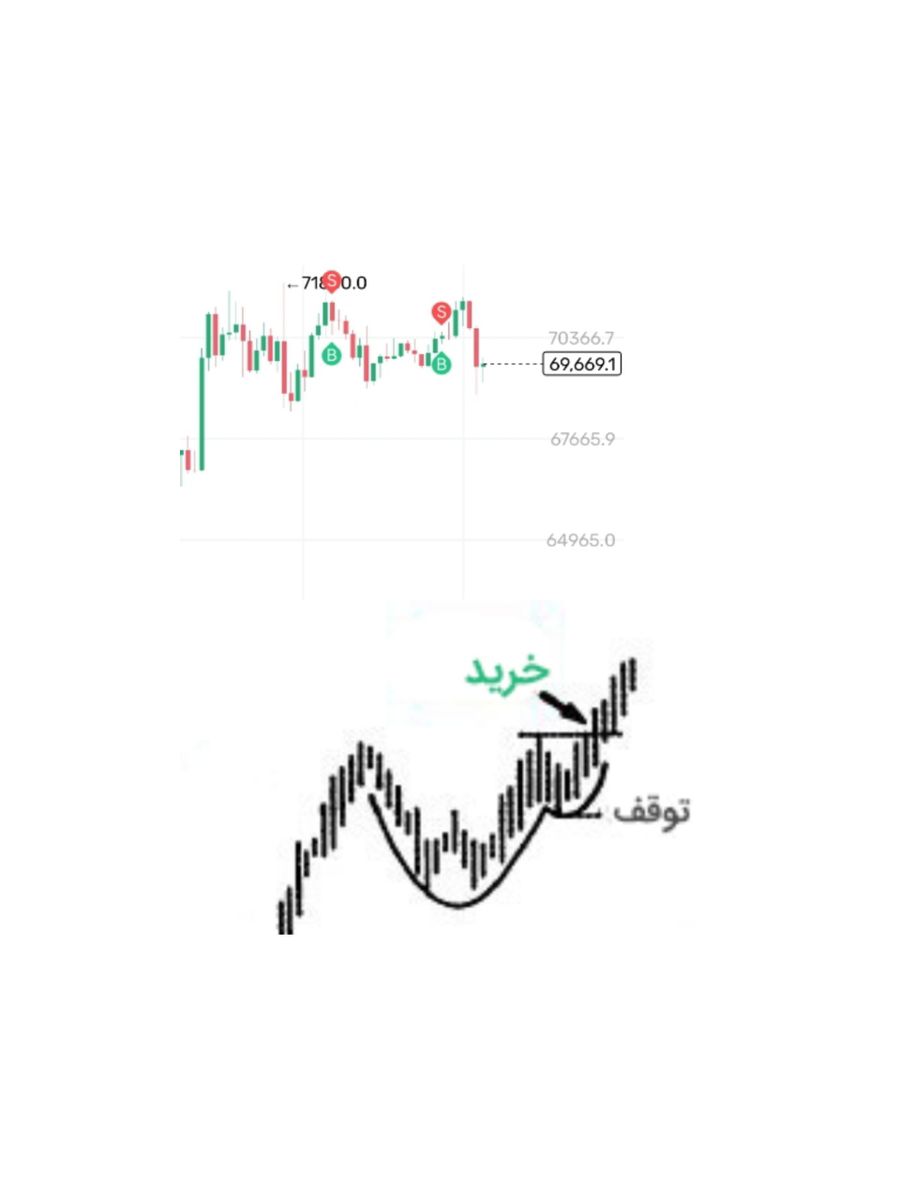 بیت کوین در تایم فریم ۴ ساعتها الگوی فنجان تشکیل داده و صعودی هست