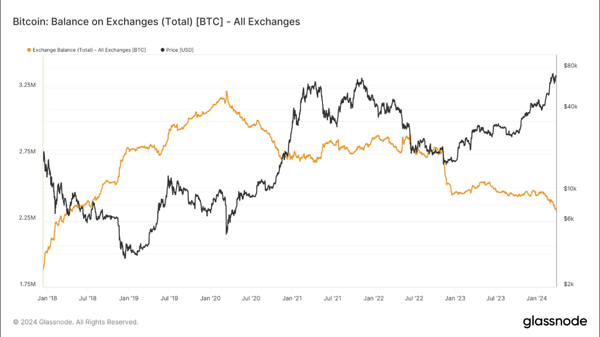 در سال 2024، نزدیک به 10 میلیارد دلار بیت کوین از صرافیها خارج شده است.
