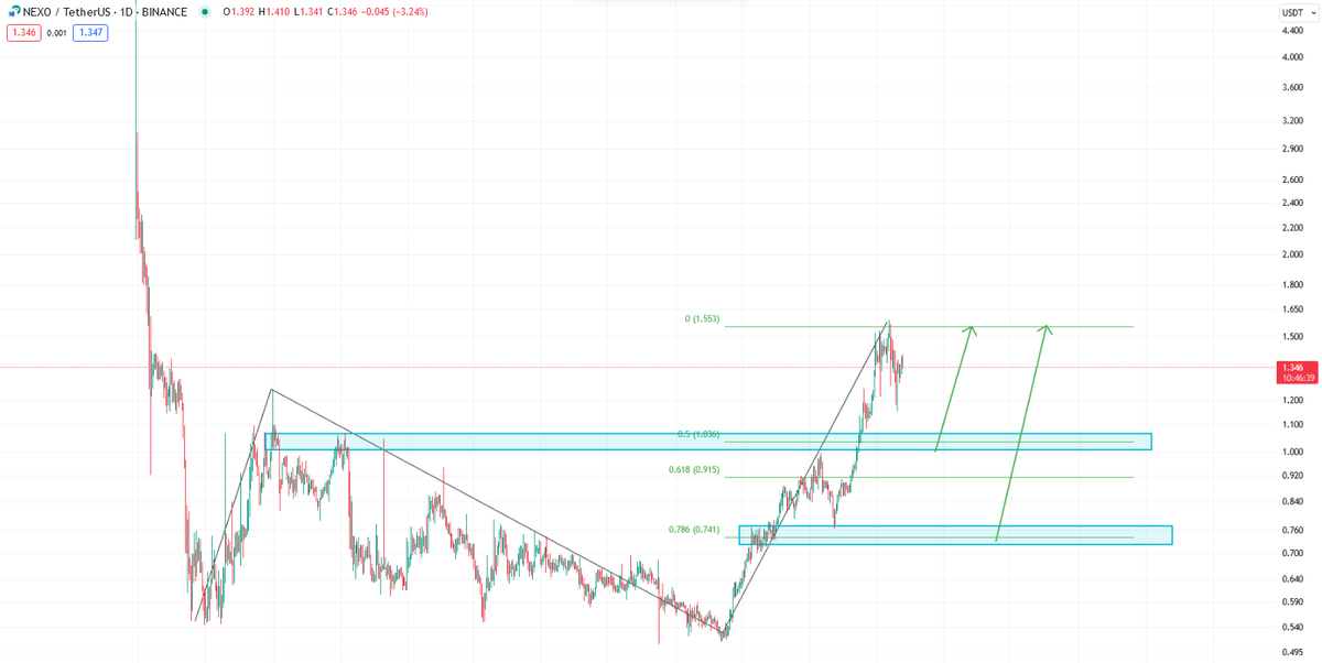 نکسو (NEXO) در واقع یک سیستم وام دهی بر بستر بلاکچینه که کاربرا به کمک اون میتونند وام دریافت کنند یعنی دارایی خودشون که ارز نکسو هست رو استیک کنن و در عوضش وام بگیرن. جالبیه این سیستم اینه که علاوه بر نکسو شما میتونید با ۲۰ ارز دیگه مثل بیت کوین اتریوم بی ان بی مونرو و … هم وام خودتون رو دریافت کنید. این شرایط برای کسایی که هولدر هستند عالیه، شما میخوای ارزتو برای چند سال نگهداری به جای اینکه بزاری تو ولتت میای تو این بلاکچین اونو استیک میکنی و در عوضش وام دریافت میکنی. جدا از بحث در مورد خاصیت این ارز یه نگاهی هم به نمودار قیمتش بندازیم. این ارز بعد از لیست شدنش تو صرافی بایننس حتی تا ۵ دلار هم رسیده بوده اما بعد از اون کاهش قیمت رو فقط تجربه کرد و تا ۰.۵ دلار هم رسید. اما این پایان ماجرا نبود و نکسو تونست بعد از اون کاهش عجیب و غریب روند صعودی خودش رو شکل بده و به ۱.۵۵ دلار برسه. رسیدن قیمت به این ناحیه برای ما به معنی تغییر روند از نزولی به صعودی در نظر گرفته میشه. الان باید صبر کنیم و منتظر باشیم و البته اندکی خوش شانس که قیمت کاهش بیشتری رو تجربه کنه و به ناحیه مد نظر ما تو قیمت های زیر برسه. رسیدن قیمت به این ناحیه ها میتونه دست ما رو برای خرید و سرمایه گذاری رو این ارز با دید بلند مدت بازتر کنه. پس ناحیه های ۰.۹۰ و ۱ دلار رو به عنوان پله اول برای خرید در نظر میگیریم و قیمت ۰.۷۰ دلار رو به عنوان پله دوم. این ارز قطعا در آینده حرف های بیشتری برای گفتن مییتونه داشته باشه پس حتما یه بخشی از سرمایه خودتون رو برای خرید این ارز اختصاص بدین البته که مثل همیشه تاکید میکنم مدیییییریت سرمایه فراموش نشه.