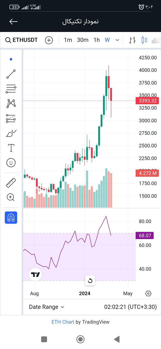 براساس داده نمودار و کندل خوانی در تایم فریم هفتگی اصلاح قیمت ۳۳۲۰قیمت رالی صعودی خود راشروع کرده به سمت تارگت ۴۱۰۰دلار وسپس با اصلاح قیمت فعلی ۳۴۶۰موج بعدی بسمت تارگت ۴۶۰۰را اغاز می کند بهترین زمان خرید قیمت ۳۴۰۰برای صعود میباشد.