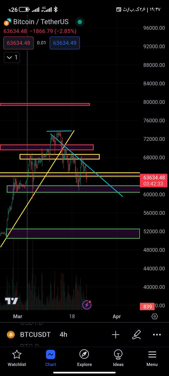 تمامی مقاومت ها و حمایت ها مشخص شده و خط ترید لاین نزولی هم شکسته نشده به احتمال زیاد از 52 بتونه قدرت بالا اومدن داشته باشه هر موقع ترید لاین نزولی رو شکست اون موقع میتونین ورود کنید به نظر من بهترین جا برای ورود همون 52 الی 54 هستش البته اگه حمایت بشه روی 61 احتمال برگشت وجود داره اما درصد موفقیت اومده پایین قبلا 80 درصد بود اما الان 50 درصد وجود داره تا روی قیمت 62 حمایت بشه