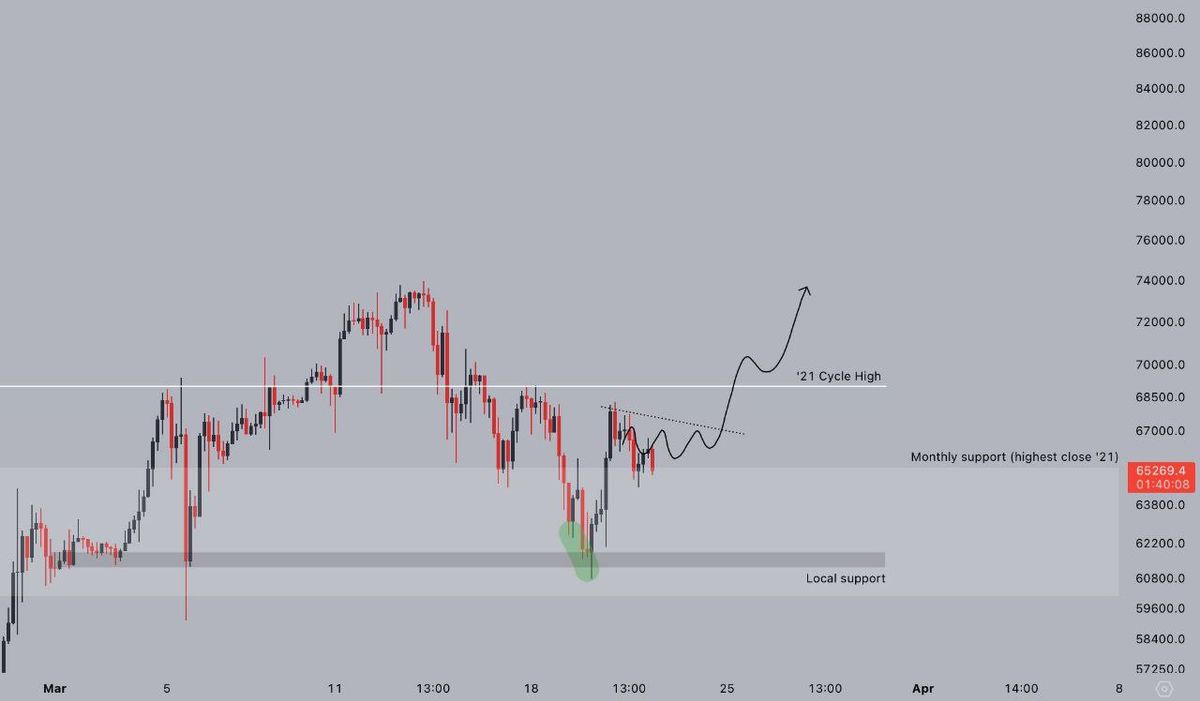 خرسها تلاش میکنند قيمت بیتکوین را پایین بیاورند و قیمتها را دوباره به حمایت ماهانه ۶۵۳۰۰ دلار برسانند.