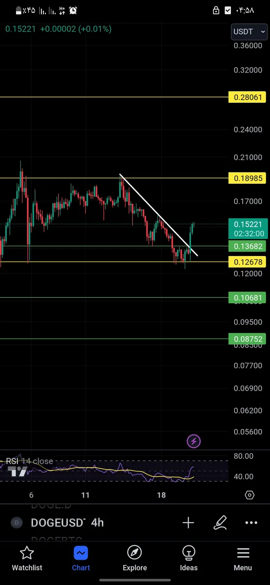 بعد حمایت در ناحیه ۱۲ سنت شروع خوبی در صعود به همراه بیت کوین داشتیم در صورت عبور از ۰/۱۵۴ و تثبیت روی آن مقاومت ۰/۱۷۷و مقاومت مهم ۱۹ سنت رو داره که قبلا نتوانست بالای آن تثبیت بده و اصلاح از آن نقطه کلید خورد