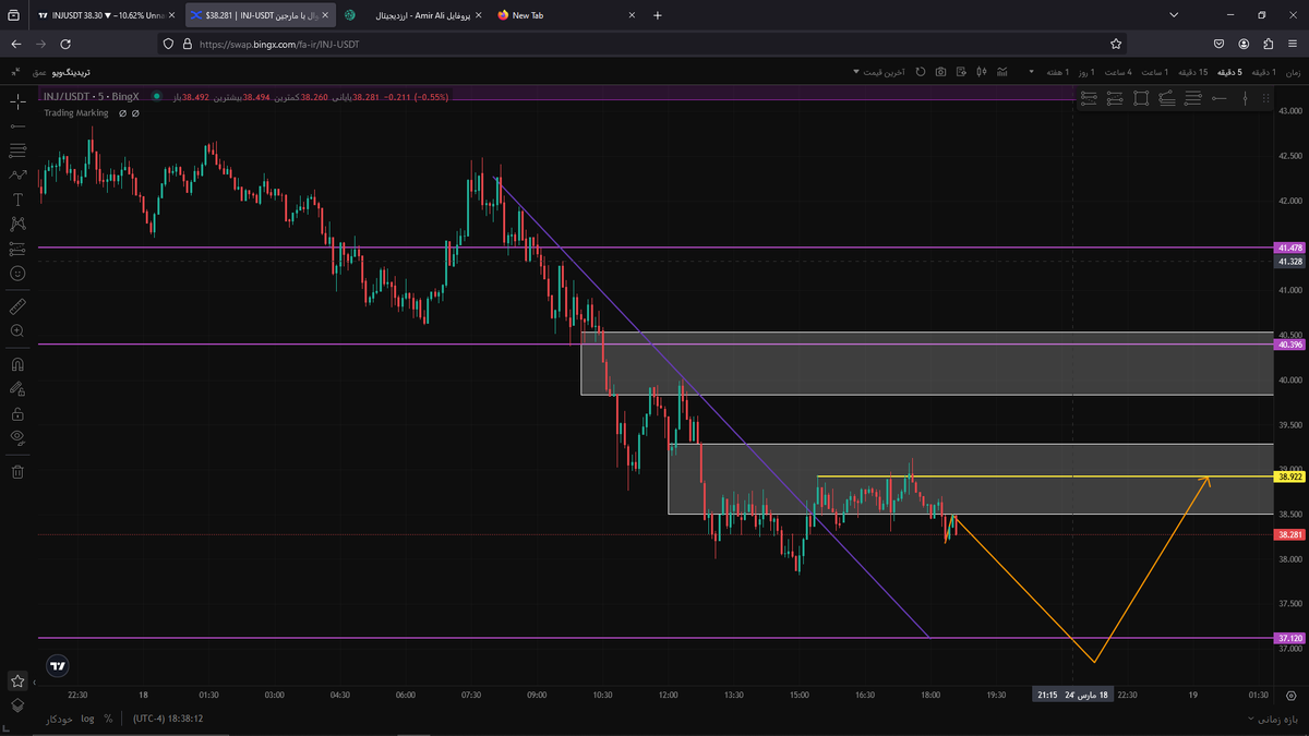 تایم فریم ۵ دقیقه یه ریزش تا 37 بعدش صعودی تا 38.922.