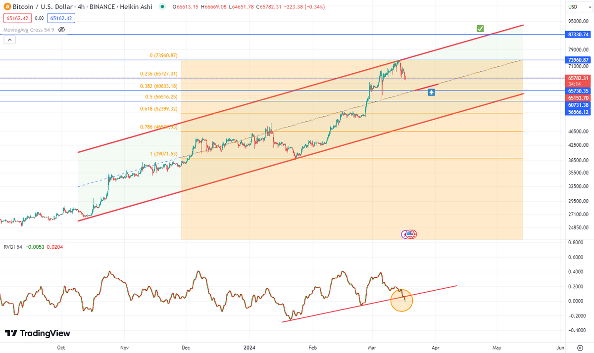 #BTC در تایم 4 ساعته ارز به سقف کانال برخورد داشته و شروع به اصلاح نموده است . حمایت مهمی در محدوده میدلاین کانال مذکور دارد . در صورت حمایت هدف میان مدت در حوالی 87000 دلار خواهد بود . در صورت عدم حمایت در میدلاین محدوده 53000 در نزدیکی ترندلاین کانال مزبور مدنظر قرار خواهد گرفت .