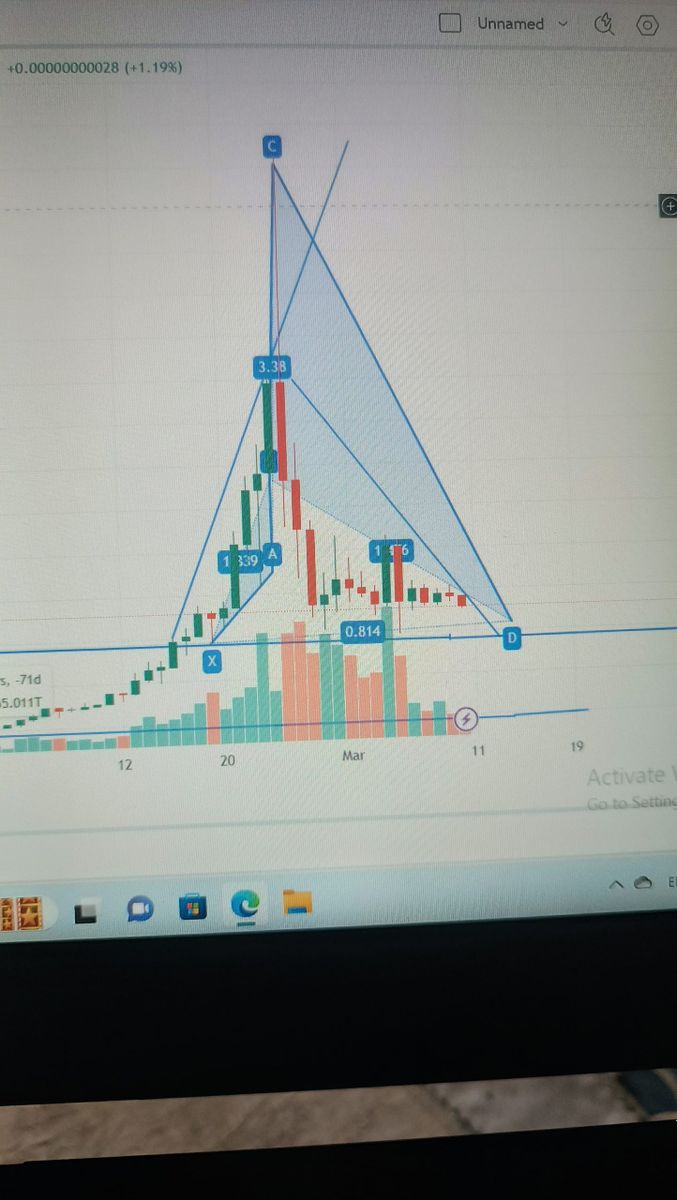 در تایم فریم یک روزه الگوی سقف بازگشتی کامل شده و کاملا مشهوده ودر ناحیه ی 0.00000005670حمایت مهمی هست در صورت شکوندن ریزش تا کف کانال ولی شواهد میگه از همین جا که الان هست تقریبا صعودی بشه