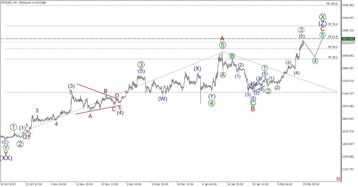 بازار XRPUSD باید در دراز مدت یک زیگزاگ سه گانه را، همراه با کامل شدن موج پیوندی XX در داخل به صورت یک زیگزاگ دوبل [W]--[Y]، شکل دهد. یک موج صعودی جدید در آخرین بخش نمودار در حال توسعه است. امواج فرعی [1] و [2] باید به پایان رسیده باشند، و قیمت ریپل باید در موج فرعی (3) از [3] به سطح 0.602 افزایش یابد.