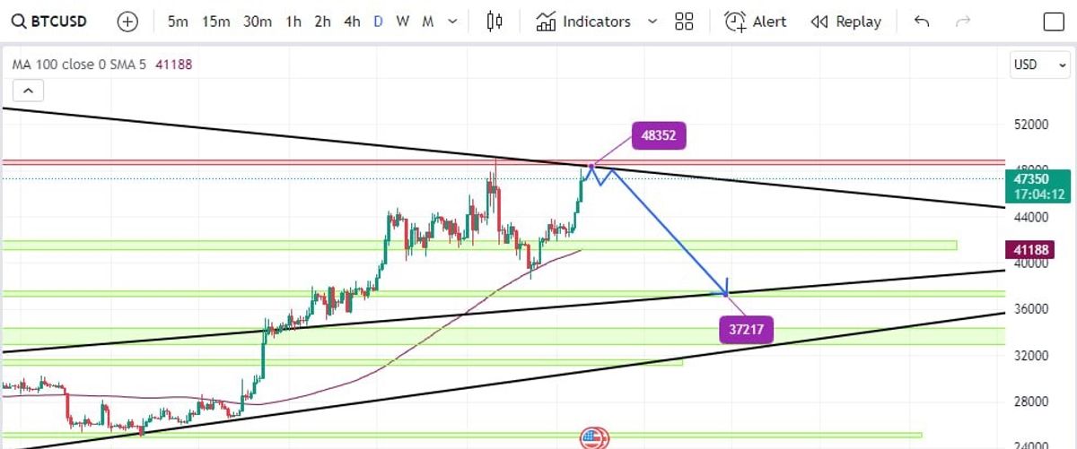 همانطور که قبلا گفته شد بیتکوین یکبار دیگر خودش رو به ۴۸۰۰۰ خواهد رساند و این اتفاق افتاد