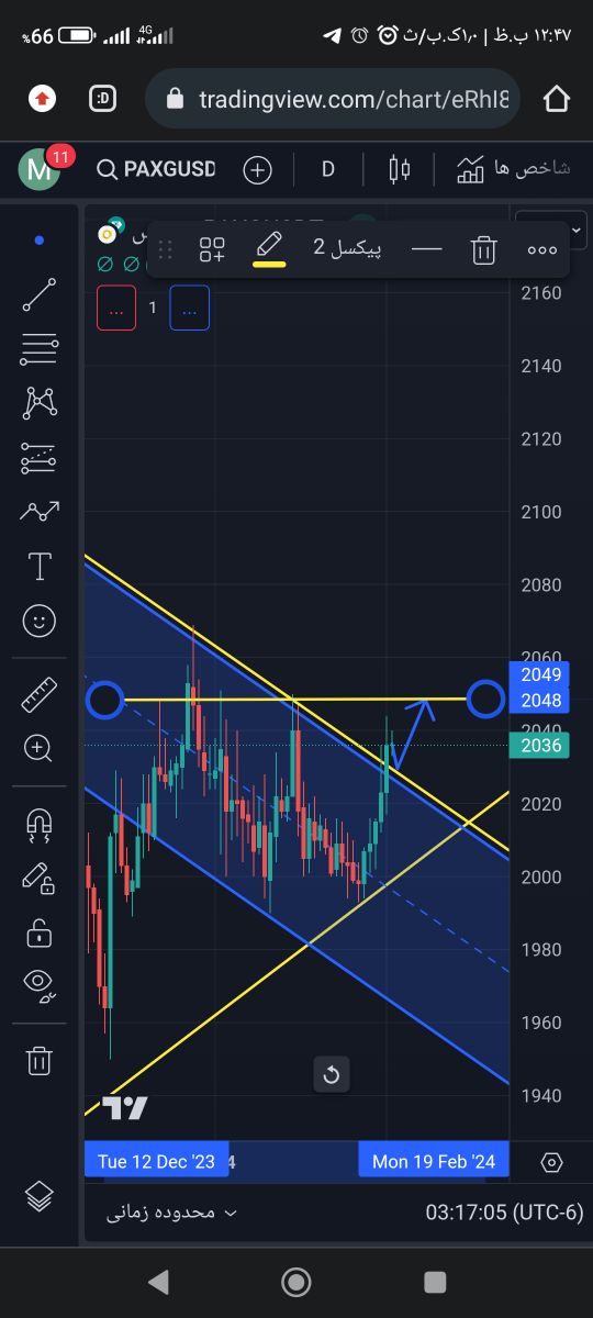 پکس گلد بعد از شکست روند نزولی وارد کانال صعودی شده انتظار میره بعد از ریتست زدن به مقاومت خط روند قبلی تا محدوده 2048بالا بره و اگر اون سطح مقاومت رو هم بشکنه پله های بالاتری رو تجربه کنه، این مطلب صرفا تحلیل شخصیه و طبق استراتژی خودتون عمل کنید، پر سود باشید