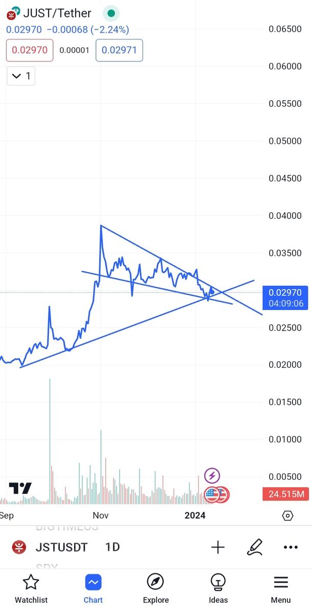 جمع شدن قیمت در کنج مثلث انتظار رنج تا مدتی و بعد از آن صعود زیر نظر باشه مستعد صعود شارپ
