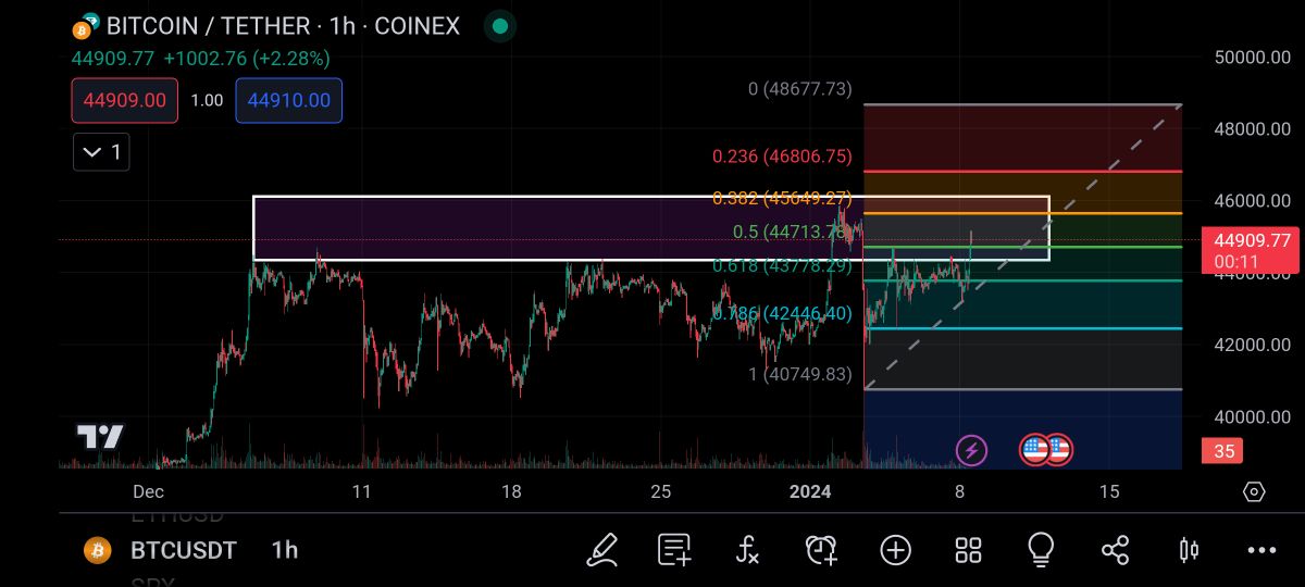 شکست مقاومت استاتیک و قرارگرفتن در باکس حیاتی، درصورت شکست 45600 تا 46800 امکان صعود هست