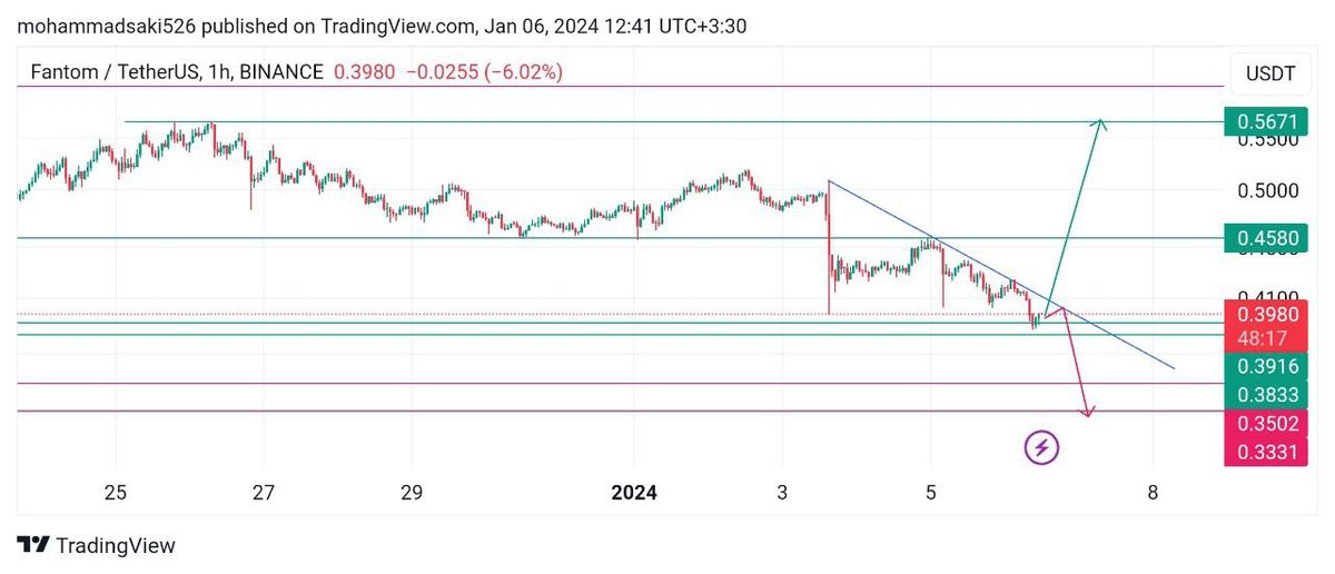محدوده سبز رنگ در قیمت 0.3916 فعلا خوب حمایت شده که در صورت ادامه مسیرش و شکست ترند نزولی محدوده عرضه سنگین بعدی روی چارت مشخص میباشد و در صورت از دست داد انتظار داریم خودشو به 0.3500برسونه