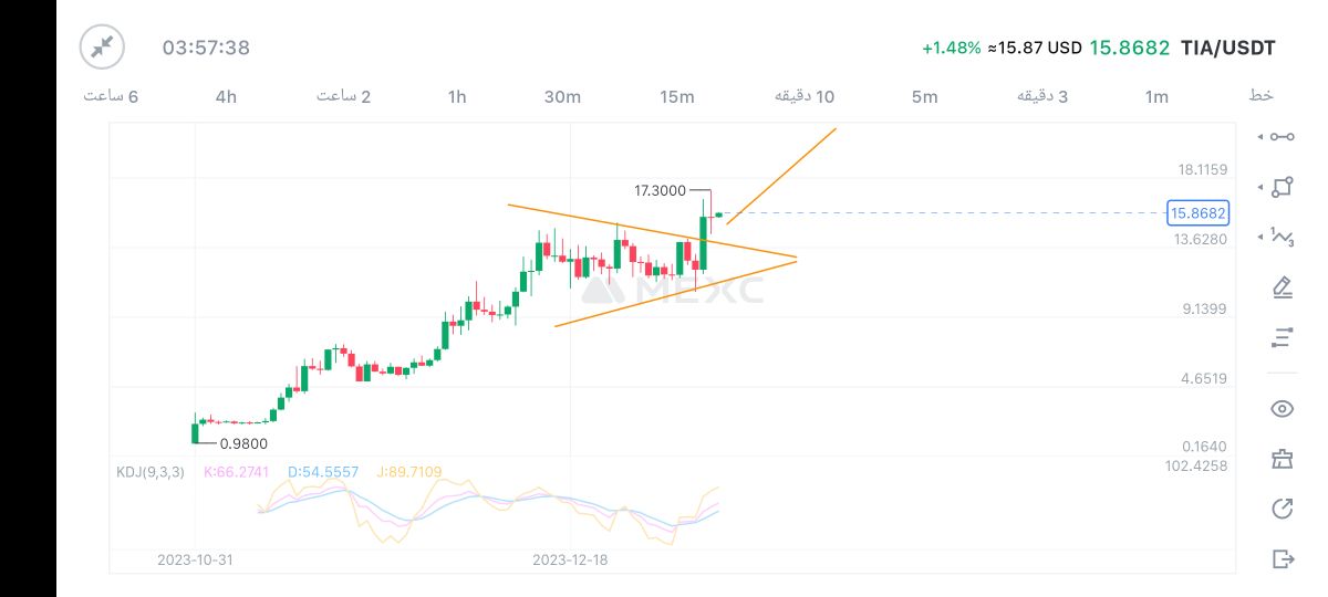 تایم فریم روزانه مثلث متقارن رو به بالا شکسته