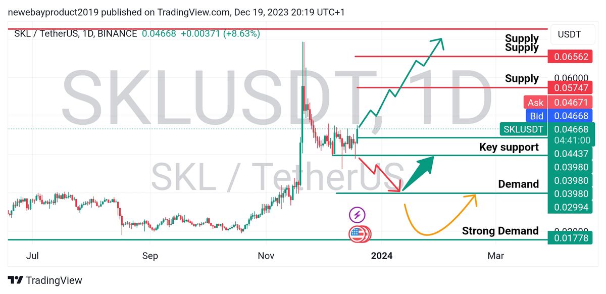 همانطورکه در چارت مشخص هست اگر در ساعت های باقیمانده کندل بار در بالای کی ساپورت بسته شود احتمال افزایش قیمت تا محدوده۰.۰۵۷ بسیار زیاد هست.