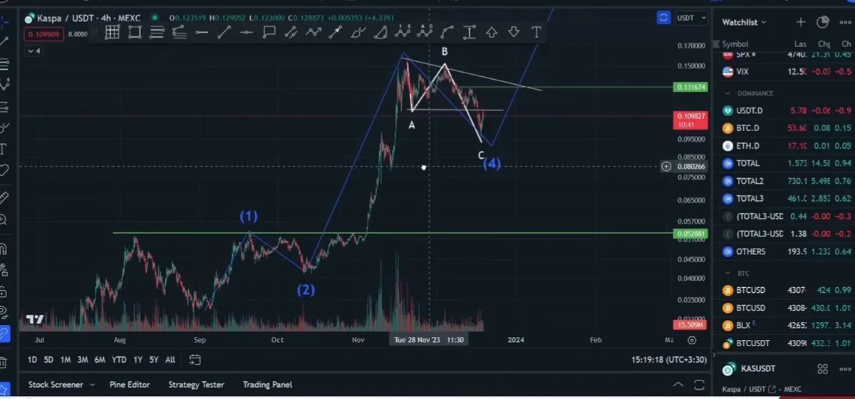 بعد از یک حرکت خوب از کسپا در موج پنج خودش قرار گرفته است و حمایت در ۰.۱۰سنت قرار گرفته است که در صورت شکست میتواند ۰.۸سنت را ببیندکسپا باید بتواند از مقامت۰.۱۳۱۶۷عبور کندو در ۰.۱۴سنت تثبیت بدهد که میتواند ۰.۱۶و۰.۲۰سنت را ببیند