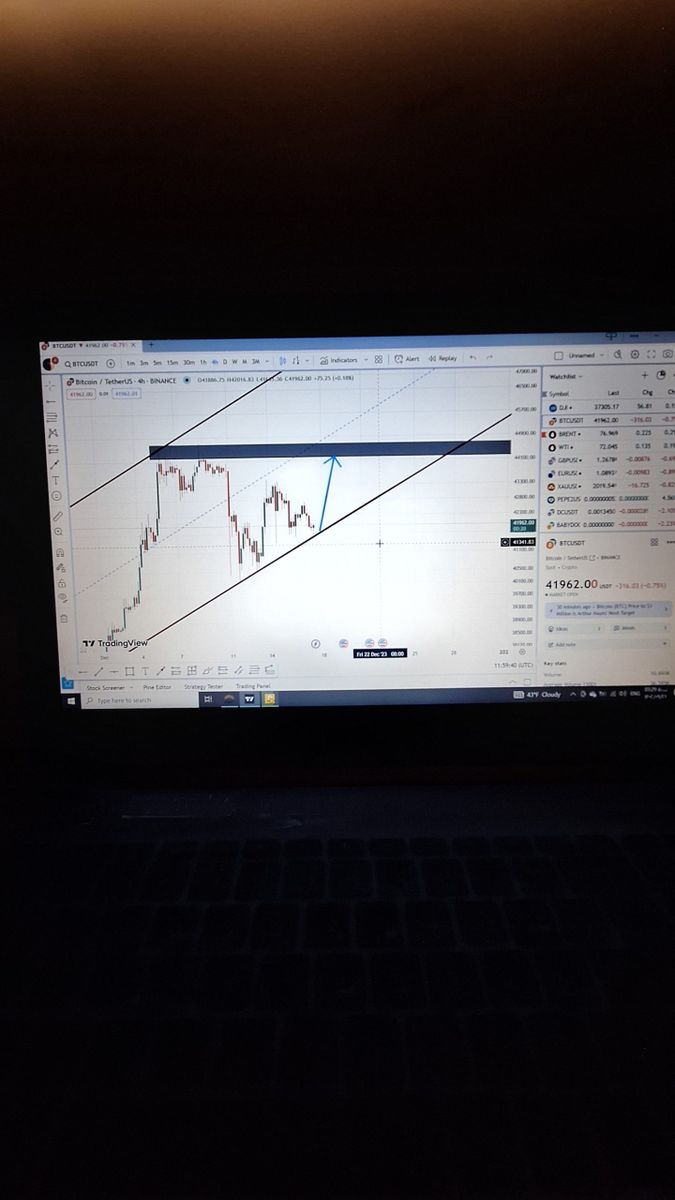 همانطور که از چارت بیت کویین معلوم هستش کف کانال رو لمس کرده و حرکت صعودی به سمت زون مقاومتی گه پیش روی داره رو شروع کرده اینجا میتوان با رعایت مدیریت سرمایه وارد معامله شد و برای کسانیکه ریسک نمی کنند ۴۴۱۰۰از معامله خارج شن و کسایی که ریسک پذیر هستن میتوانند تا ۴۸۱۰۰ توی معامله بمونن البته با توجه به شکست مقاومت پیش رو عواقب استفاده از این تحلیل بر عهده خود نفر می باشید