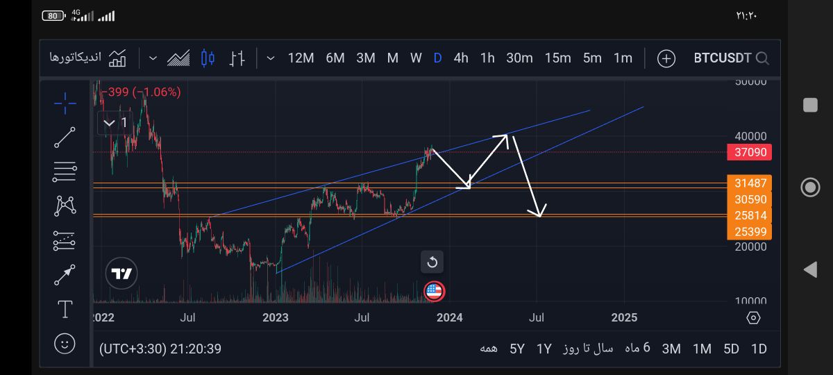 به نظرم این ناحیه خیلی خیلی قویه و سفارش های فروش زیادی اینجا در حوای ۳۷۰۰۰ کاشته شده به نظرم اگر بخوایم این ناحیه رو بشکنیم نیاز به اصلاح هست و به نظر من در هفته های پایانی سال میلادی شاهد اصلاح قیمتی بیت کوین باشیم