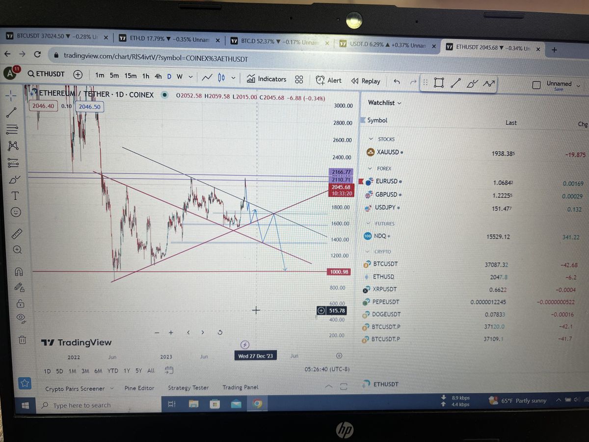 با احترام این آخرین آپدیت تحلیل من روی اتریوم میباشد که همچنان سناریوی نزولی بازار حاکم میباشد ٫