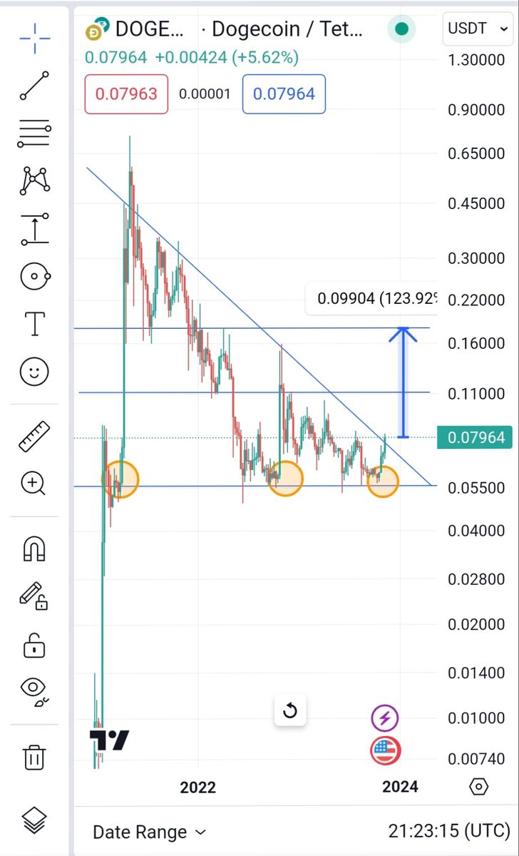 با سلام و عرض خسته نباشید دوج کوین در حال شکست خط روند نزولی خودش هست که درصورت شکست آن مقاومت دوم در دسترس خواهد بود و میتونه تا محدوده ۱۸ سنت پامپ داشته باشه و درصورت اصلاح میتونه فاز آخر کف سازی رو تکمیل کنه در محدودهد۵ سنت ولی در حالت کلی منتظر پامپ غریب الوقوع دوج کوین رو داریم