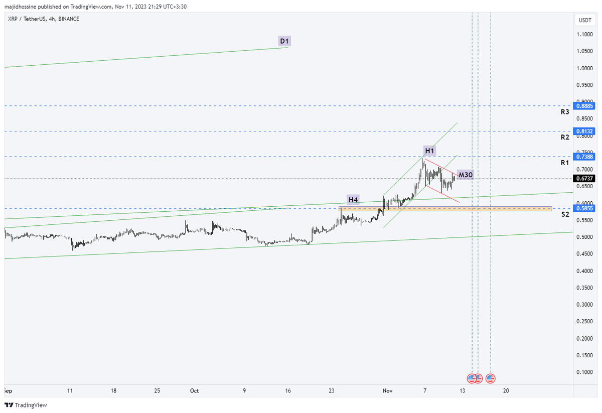 تحلیل شخصی: قیمت ریپل به بالای محدوده عرضه 0.5855 نفوذ کرده احتمال اول با پایان اصلاح شروع روند صعودی به سطح مقاومت های بعدی