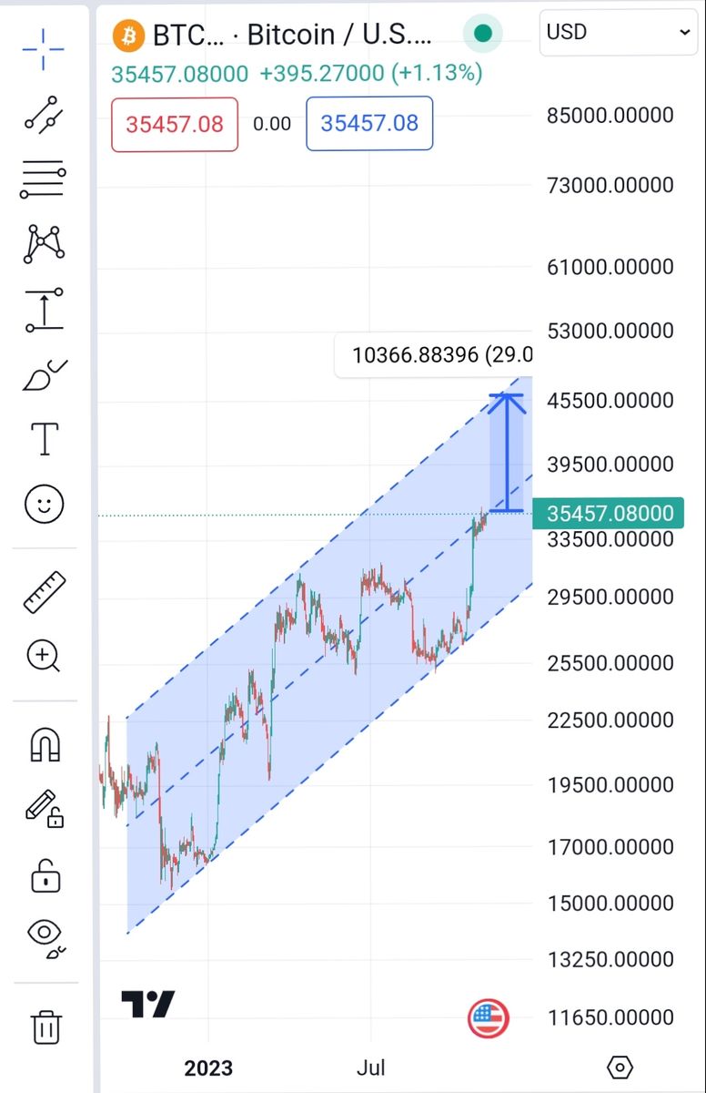 با سلام و عرض ادب بیت کوین در حال عبور از میدلاین کانال موازی هست که در صورت حفظ روند میتونه در بدترین حالت تا ۴۶ هزار صعود شارپی داشته باشه و انتظار اصلی در شرایط فعلی از بازار حفظ روند و صعود پر قدرت بخصوص در هفته پیش رو خواهد بود با درود و سپاس فراوان خدمت همکاران گرامی
