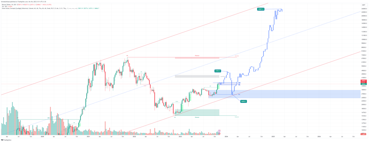 بنده فرهاد لطفی زاد هستم، در این تحلیل سعی کردم از گذشته بازار و با توجه به تعداد روز های باقی مانده تا هاوینگ ، حرکت احتمالی بیت کوین را پیش بینی کنم. به نظر من بیت کوین بعد از رسیدن به ناحیه 47 هزار دلار ریجکت میشه و تا محدوده 26 هزار دلار اصلاح می کنه و سپس حرکت صعودی خودش را شروع میکنه