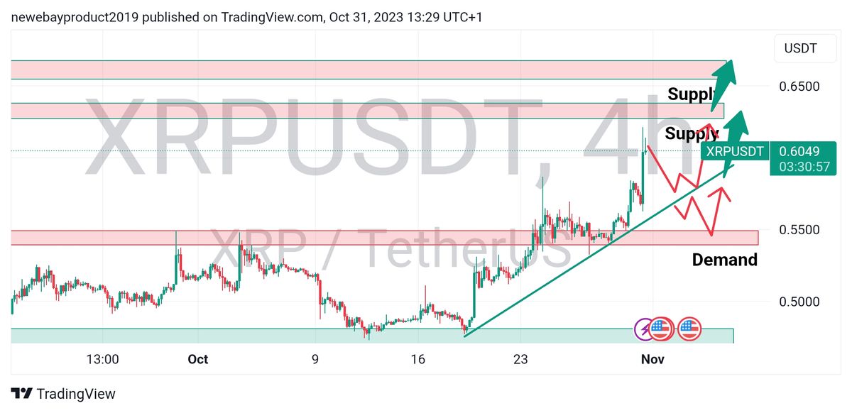 همانطور که در چارت مشخص هست روند کاملا صعودی هست اما زمان مناسبی برای گرفتن لانگ پوزیشن نیست و در ناحیه های دیماند میتوان لانگ کرد