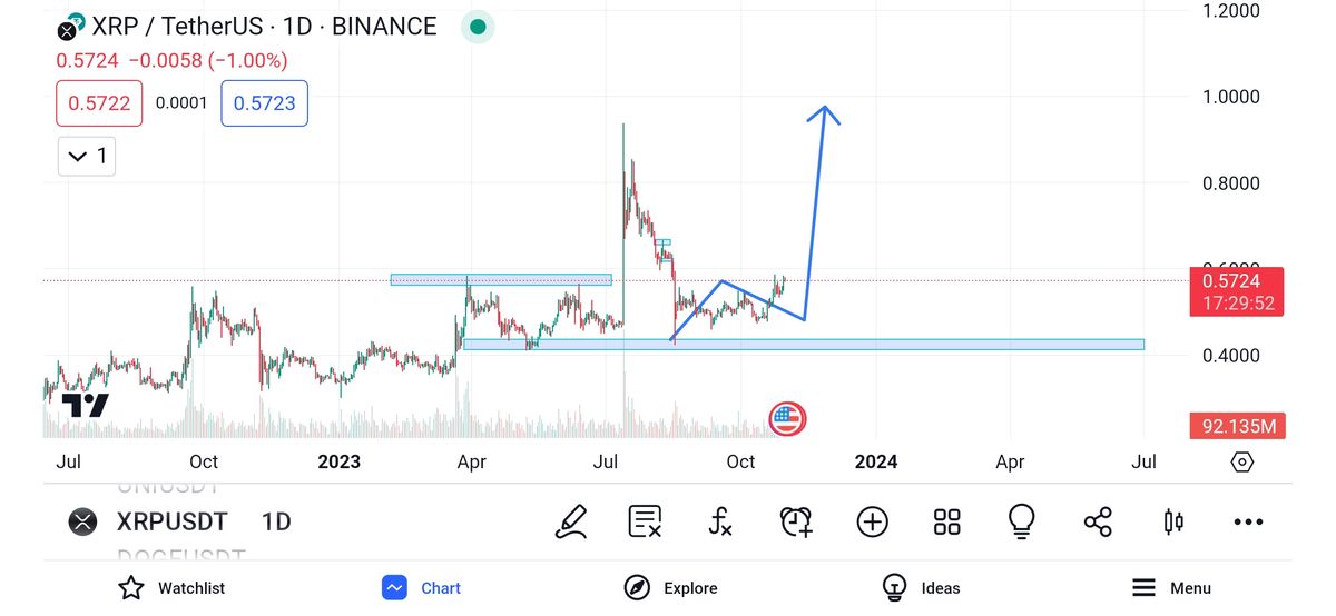 در تایم روزانه ریپل به نقطه حمایتی خود برخورد داشته