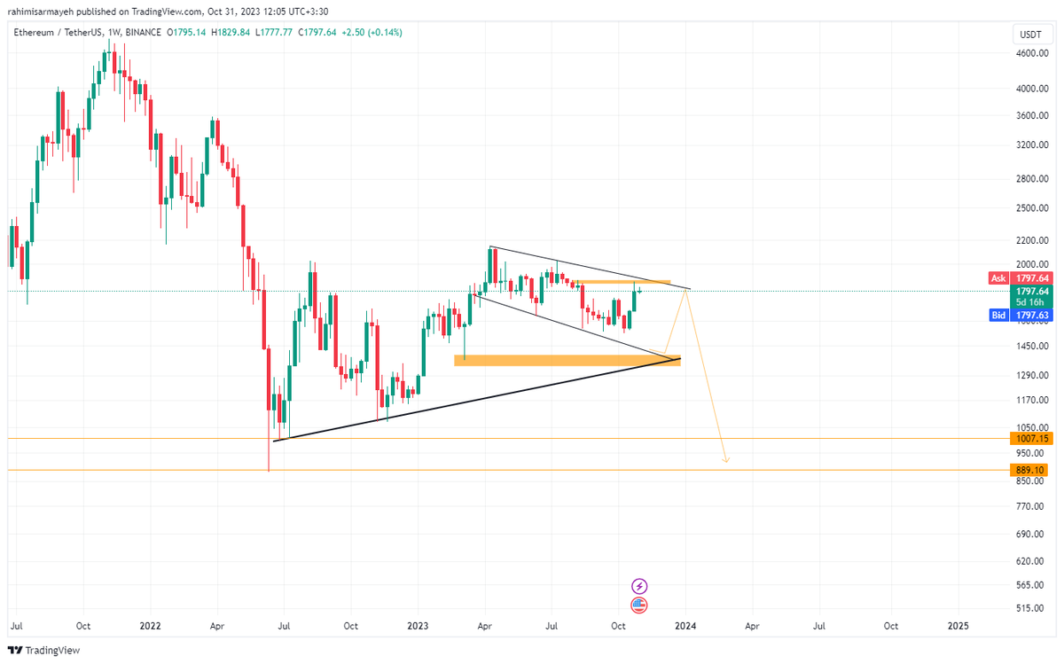 در تایم های ماهیانه و هفتگی همچنان روند بازار رو نزولی میبینم دهدف اول اتریوم محدوده1400 و هدف اخر و مهم 1000 دلار