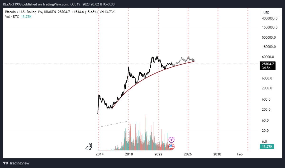 بنا به شرایط و شواهد ؛ بیت کوین قرار نیست اوج های سه رقمی رو تجربه کنه . دقت کنید که تمام سناریو ها در نظر گرفته شده و الان محتمل ترین سناریو در تصویر بالا قابل مشاهده است . حتی ریز نوسانات هم بنا به الگو های رفتاری بیت کوین ترسیم شده . اگه خواستید در جریان شرح کامل این تحلیل قرار بگیرید به لینک مکمل همین تحلیل https://arzdigital.com/ideas/5607105/ که قبلا ارائه دادم رجوع کنید .
