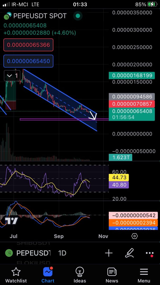 په په به مدت ۳ ماه در یک کانال نزولی قرار داره، بعد برخورد به سقف کانال (حدودا محدوده ۶۹) احتمال ریزش تا میدلاین کانال ( به عبارتی حمایت ۴۹) وجود داره، با توجه به فاند منفی جنگ احتمال ریزشی بودن بازار وجود داره