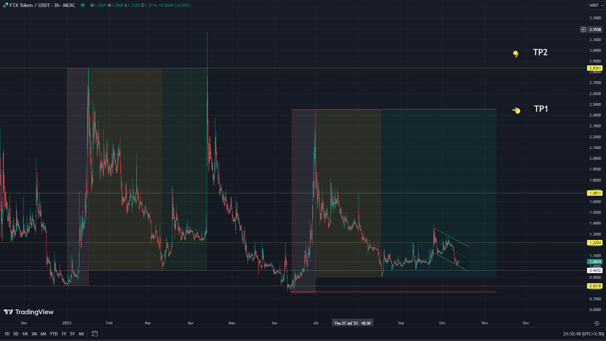 چارت FTT بعد نزولی که بعد ورشکستگی داشت 300 روز درون یه تریدینگ رنج قرار داره که طبیعی هست و نوساناتی به سقف و کف داشته که میتونسته سود سازی خوبی بکنه و با توجه به گذشته قیمتی درون چارت احتمال صعود تا محدوده 2.40 و 2.80 سنت رو داره دوستان این تحلیل سیگنال خرید نیست بیشتر برای دوستانی هست که از قبل خریدن این ارز رو گفتم با این تحلیل یه دیدگاهی بدم بهشون همین…