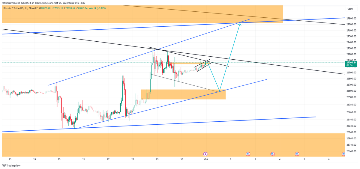 بیتکوین در تایم 15 دقیقه و 1 ساعته تحلیل شده و بنظر میرسه در کوتاه مدت به این شکل حرکت خواهد کرد