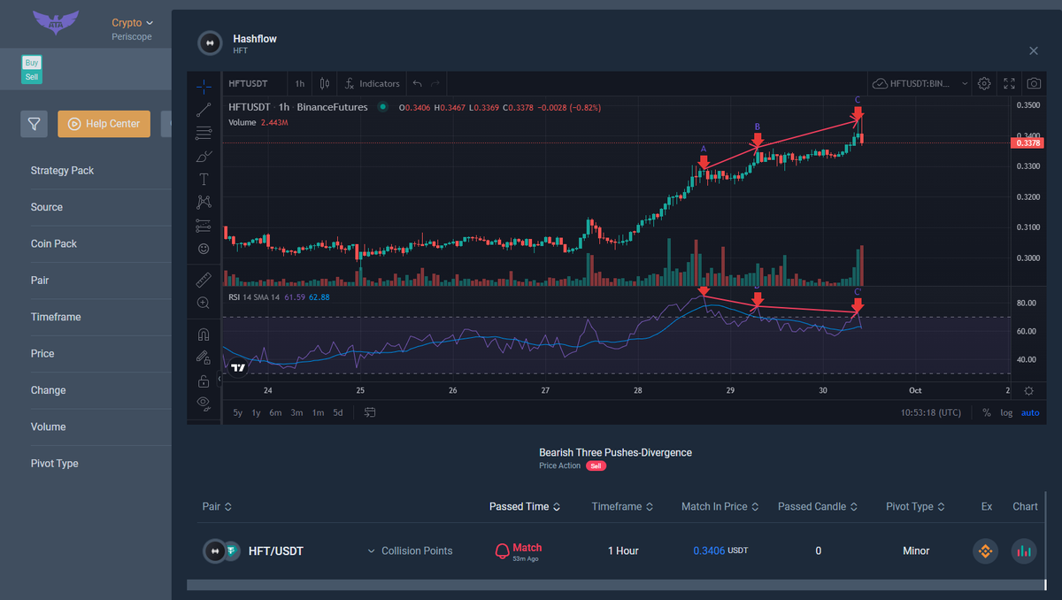 ارز Hft/usdt رو در تایم فریم یکساعته و صرافی بایننس فیوچرز